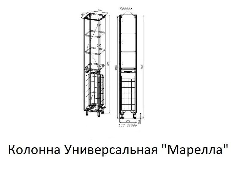 Пенал Style Line Марелла Люкс Plus L СС-00002428 30см с бельевой корзиной белый антискрейч