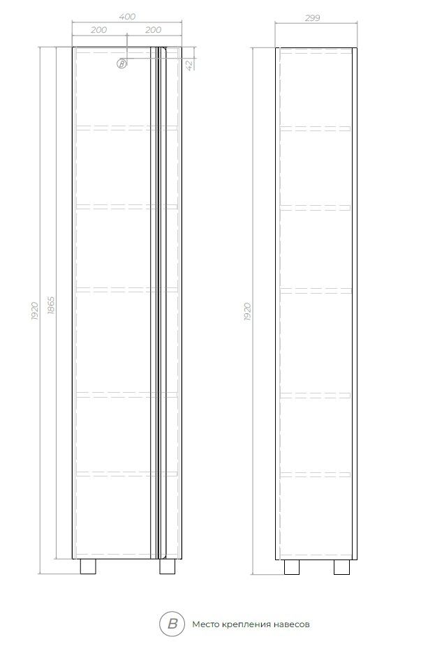 Пенал (40см) VIGO Holly pn.HOL.40, белый: 1 дверца; 5 полок ЛДСП.