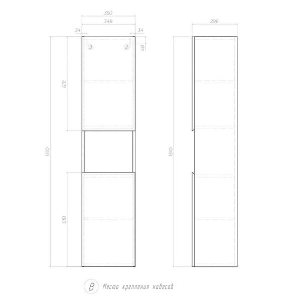 Пенал VIGO Wing 35см, дуб золотой. 2 дверцы, петли с механизмом доводчика, 4 полки ЛДСП, интегрированная ручка, 2 навеса