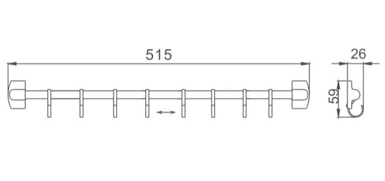 Планка с крючками для полотенец Haiba HB209-8 хром