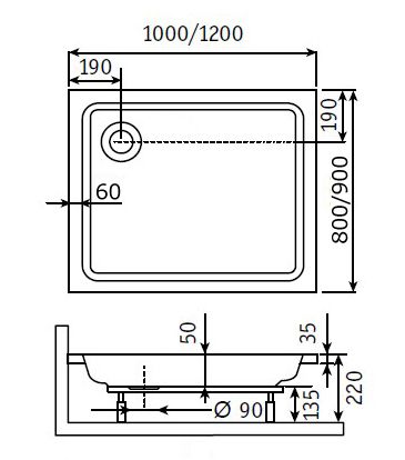 Поддон для душа RGW STYLE PR 900х1000х220 купить