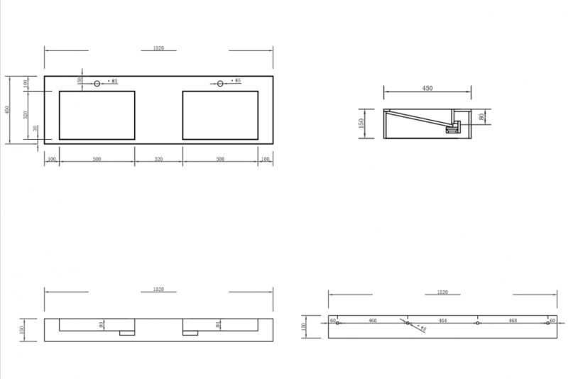 Подвесная раковина ABBER Stein AS2643-1.5 двойная 152см белый матовый