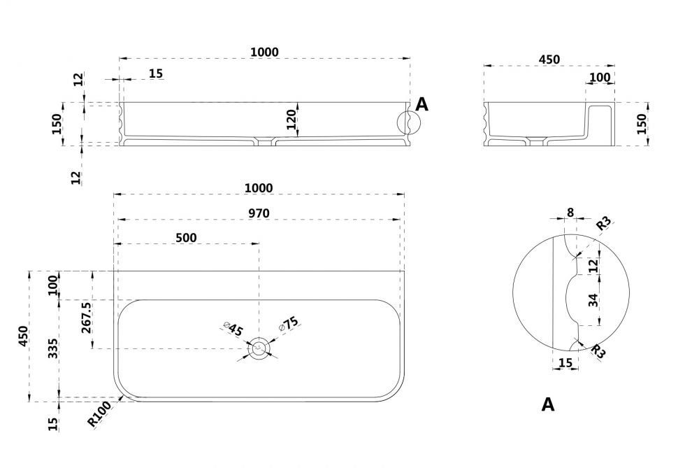 Подвесная раковина ABBER Stein AS2651-1.0 100см белый матовый