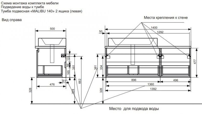 Подвесная тумба Эстет Malibu ФР-00007122 Л 140см два ящика со вставкой массив белый