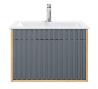 Рифленый серый матовый фасад с покрытием SoftTouch и корпус цвета дуба с роскошной текстурой подчеркнет изысканный вкус владельца и станет центральным элементом декора.