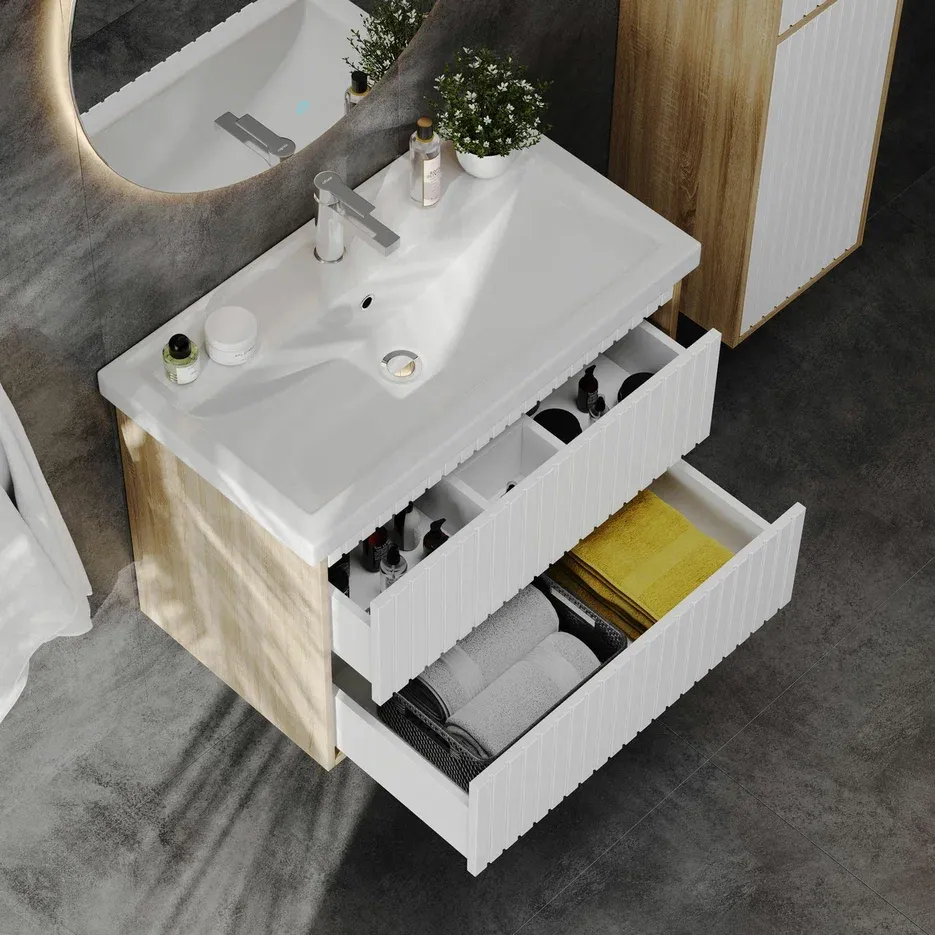 Элегантная подвесная тумба Onika Дайлер 80 представляет собой идеальное дополнение современного интерьера ванной комнаты.