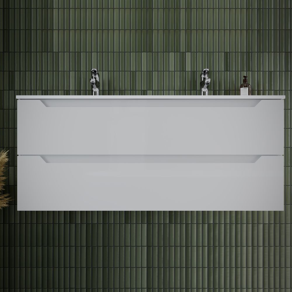 Подвесная тумба под двойную раковину Sancos Norma 2.0 NR2.0120-2W 120см белый глянец