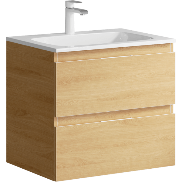 Подвесная тумба под раковину Aqwella Accent ACC0106DZ 60 смПодвесная тумба с двумя ящиками в цвете дуб золотой с умывальником из литьевого мрамора