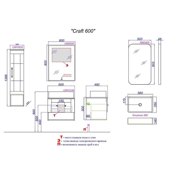Подвесная тумба под раковину Aqwella Craft CRF0106DB 60 см