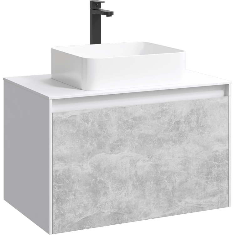 Подвесная тумба под раковину Aqwella Mobi MOB0108W+MOB0708BS 80 смПодвесная тумба 80 см с двумя ящиками: основной и внутренний, скрытый за фасадом. Цвет белый/бетон светлый; с умывальником