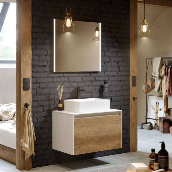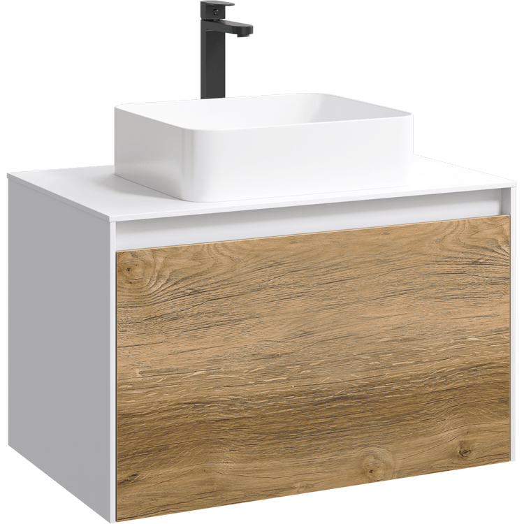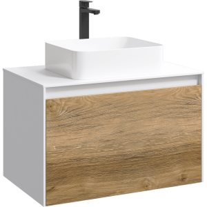 Подвесная тумба под раковину Aqwella Mobi MOB0108W+MOB0708DB 80 смПодвесная тумба 80 см с двумя ящиками: основной и внутренний, скрытый за фасадом. Цвет белый/дуб балтийский; с умывальником