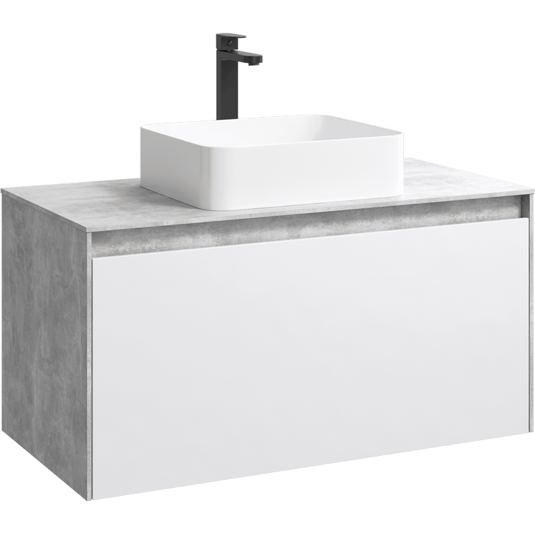Подвесная тумба под раковину Aqwella Mobi MOB0110BS+MOB0710W 100 смПодвесная тумба 100 см с двумя ящиками: основной и внутренний, скрытый за фасадом. Цвет бетон светлый/белый; с умывальником