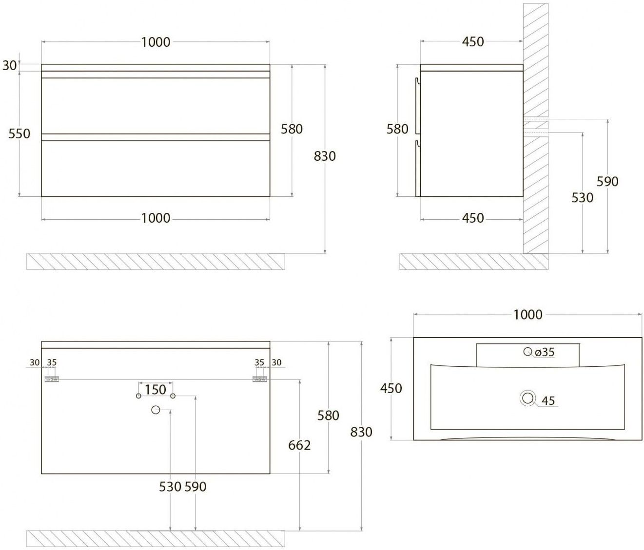 Тумба под раковину Art&Max выполнена в современном стиле и прекрасно впишется в интерьер любой ванной комнаты. Благодаря подвесной конструкции изделие не занимает много места, позволяет экономить пространство и облегчает уборку. Модель оснащена двумя выдвижными ящиками с направляющими скрытого монтажа с доводчиками. Фасад изделия выполнен из МДФ.Тумба может использоваться вместе с раковиной AM-LAV-1000-MR-FP.Раковина и смеситель в комплект поставки не входят и приобретаются отдельно.Особенности:Матовое покрытие