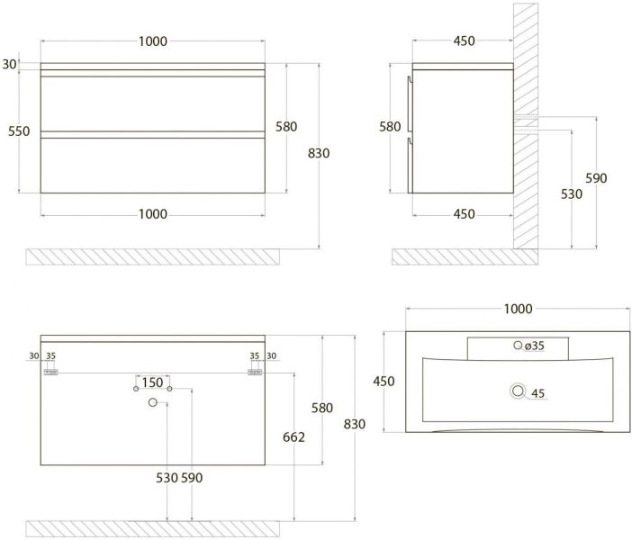 Тумба под раковину Art&Max выполнена в современном стиле и прекрасно впишется в интерьер любой ванной комнаты. Благодаря подвесной конструкции изделие не занимает много места, позволяет экономить пространство и облегчает уборку. Модель оснащена двумя выдвижными ящиками с направляющими скрытого монтажа с доводчиками. Фасад изделия выполнен из МДФ.Тумба может использоваться вместе с раковиной AM-LAV-1000-MR-FP.Раковина и смеситель в комплект поставки не входят и приобретаются отдельно.Особенности:Матовое покрытие Дополнительные характеристики:Межосевое расстояние: 150 ммРекомендуемая высота от пола: 830 ммГабариты в упаковке: 1100х580х650 ммЦвет: Grey Matt (серый матовый)