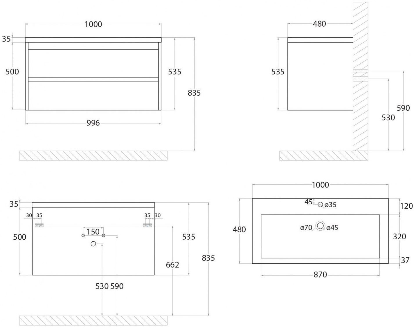 - Рекомендуемая высота от пола: 830 мм