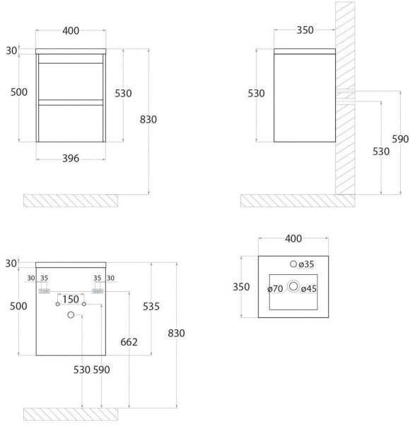 • Рекомендуемая высота от пола: 830 мм