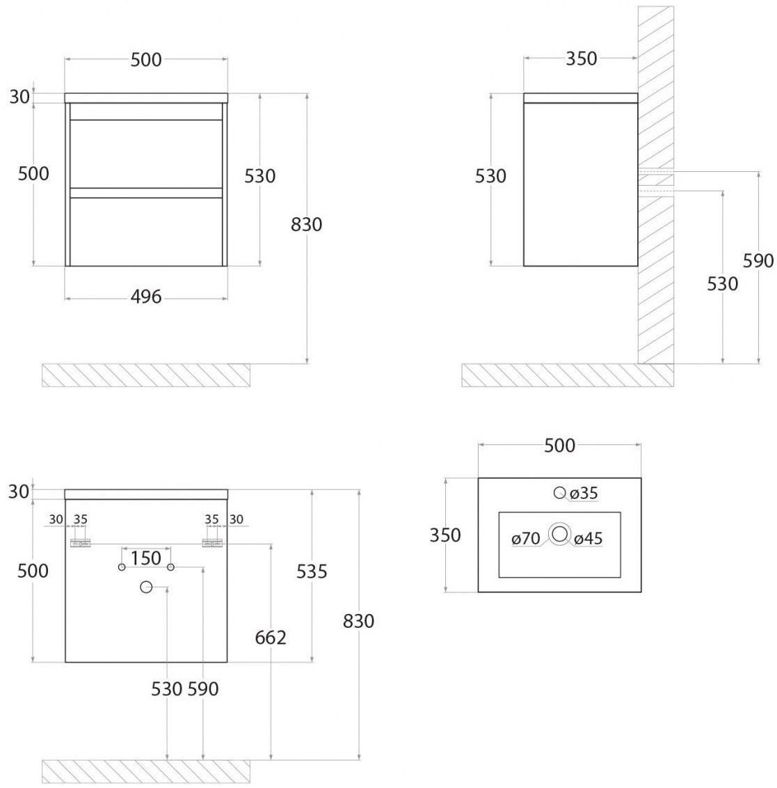 - Рекомендуемая высота от пола: 830 мм