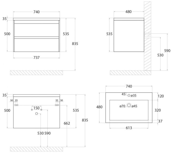 - Рекомендуемая высота от пола: 830 мм