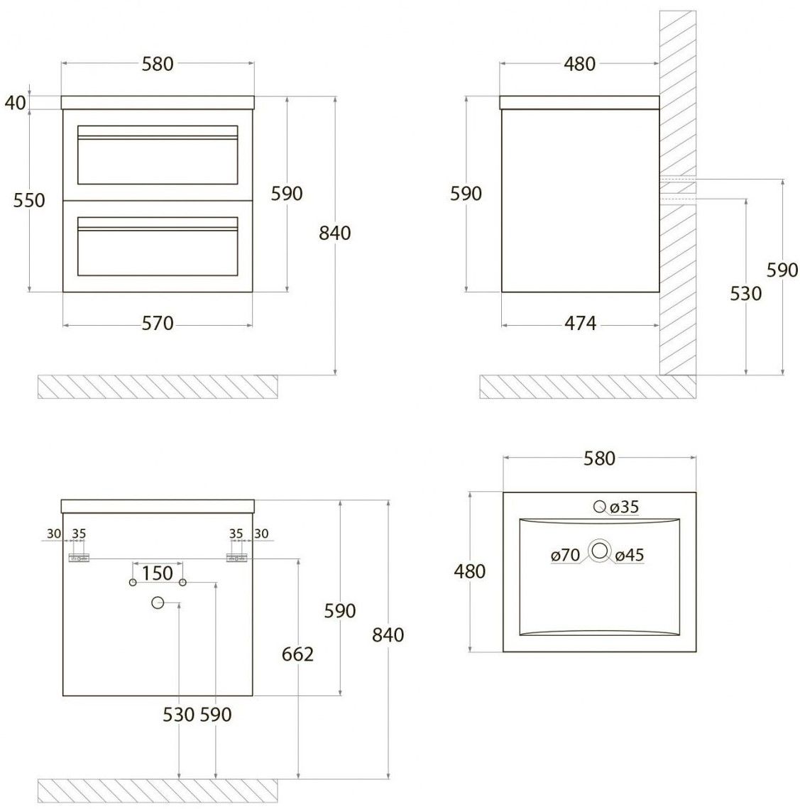 Тумба под раковину Art&Max выполнена в современном стиле и прекрасно впишется в интерьер любой ванной комнаты. Благодаря подвесной конструкции изделие не занимает много места, позволяет экономить пространство и облегчает уборку. Модель оснащена двумя выдвижными ящиками с доводчиками. Фасад изделия выполнен из МДФ.Тумба может использоваться вместе с раковиной AM-LAV-580-MR-A.Раковина и смеситель в комплект поставки не входят и приобретаются отдельно.Особенности: