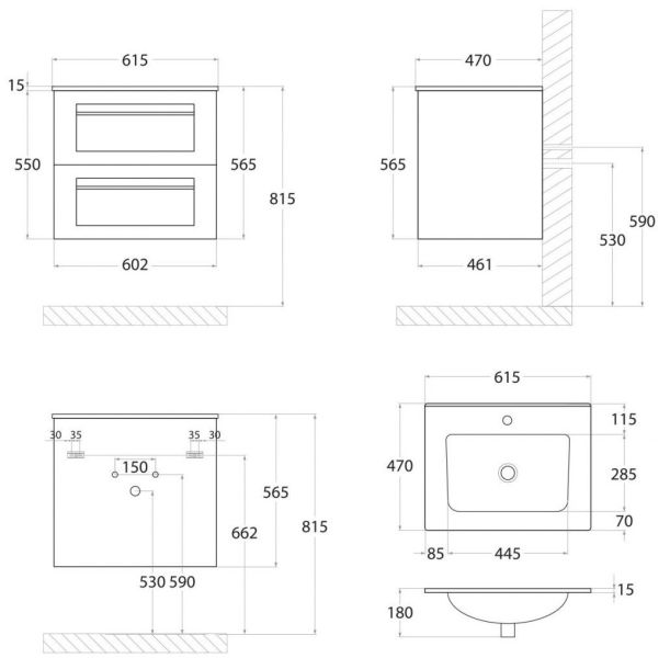• Рекомендуемая высота от пола: 844 мм