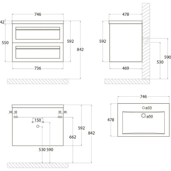 - Рекомендуемая высота от пола: 844 мм