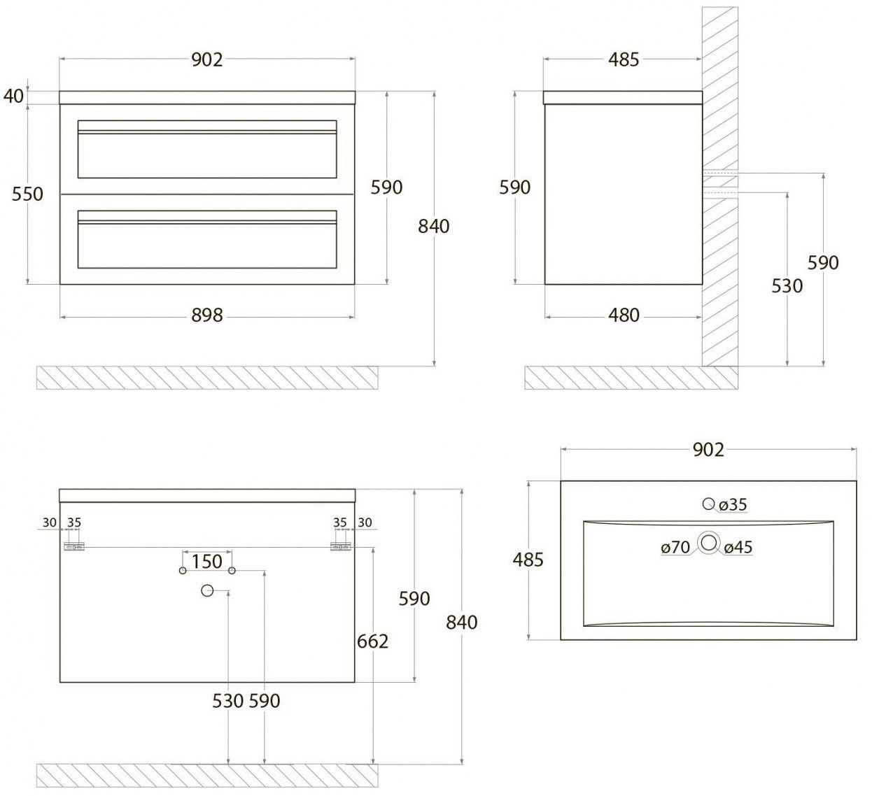 Тумба под раковину Art&Max выполнена в современном стиле и прекрасно впишется в интерьер любой ванной комнаты. Благодаря подвесной конструкции изделие не занимает много места, позволяет экономить пространство и облегчает уборку. Модель оснащена двумя выдвижными ящиками с доводчиками. Фасад изделия выполнен из МДФ.Тумба может использоваться вместе с раковиной AM-LAV-900-MR-A.Раковина и смеситель в комплект поставки не входят и приобретаются отдельно.Особенности: