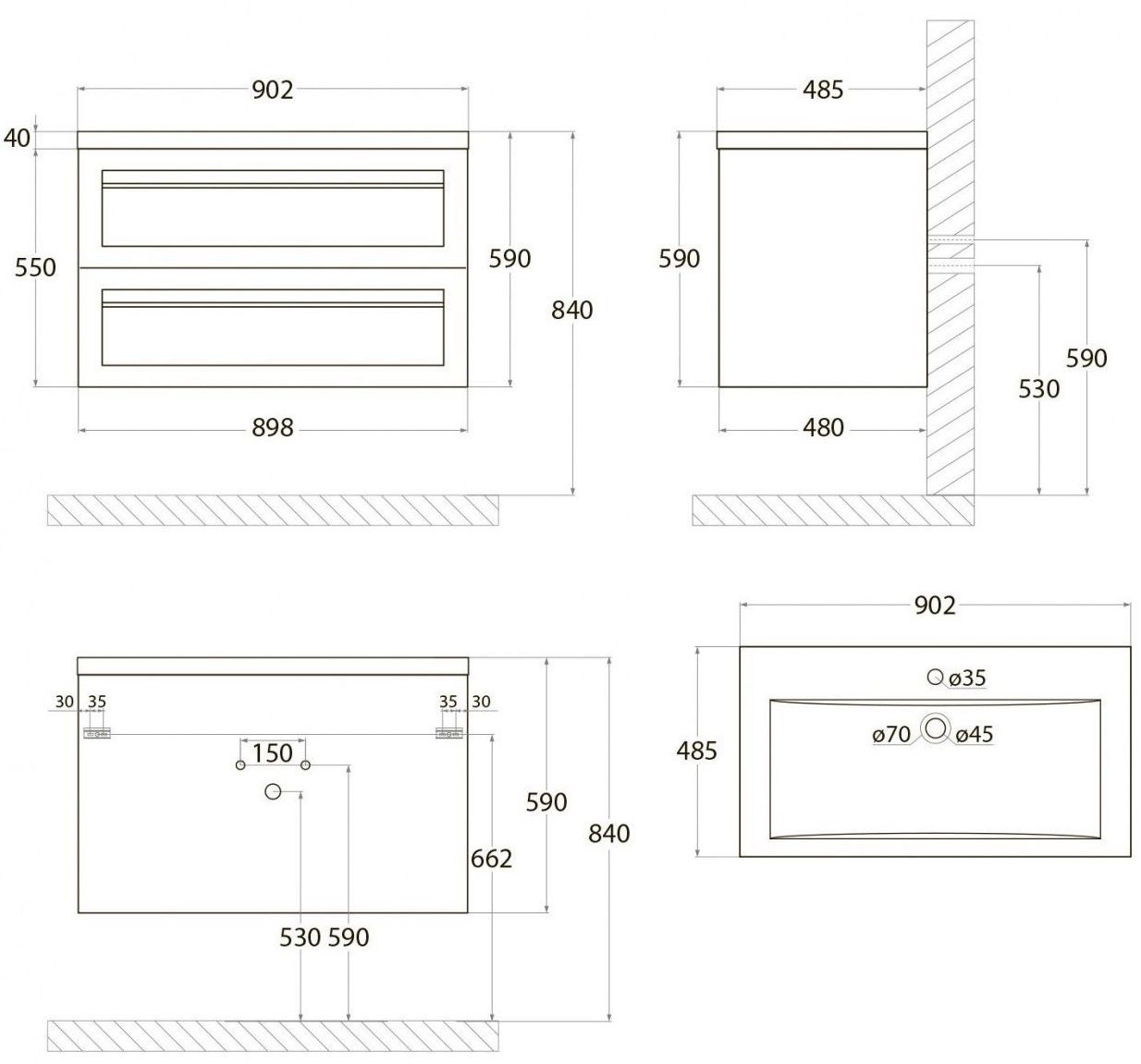 - Рекомендуемая высота от пола: 840 мм