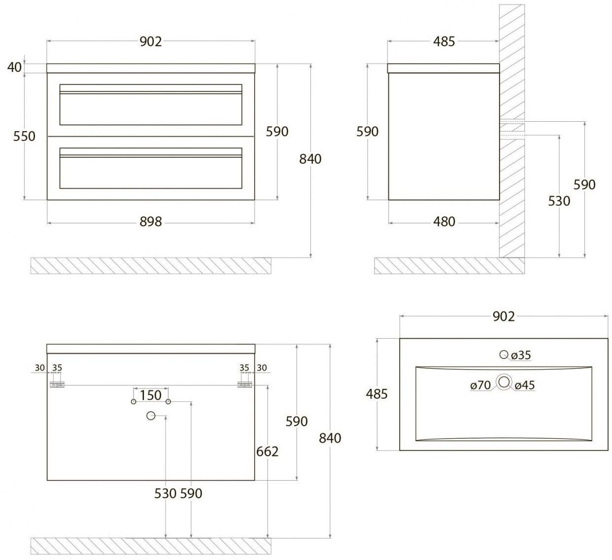 Тумба под раковину Art&Max выполнена в современном стиле и прекрасно впишется в интерьер любой ванной комнаты. Благодаря подвесной конструкции изделие не занимает много места, позволяет экономить пространство и облегчает уборку. Модель оснащена двумя выдвижными ящиками с доводчиками. Фасад изделия выполнен из МДФ.Тумба может использоваться вместе с раковиной AM-LAV-900-MR-A.Раковина и смеситель в комплект поставки не входят и приобретаются отдельно.Особенности: