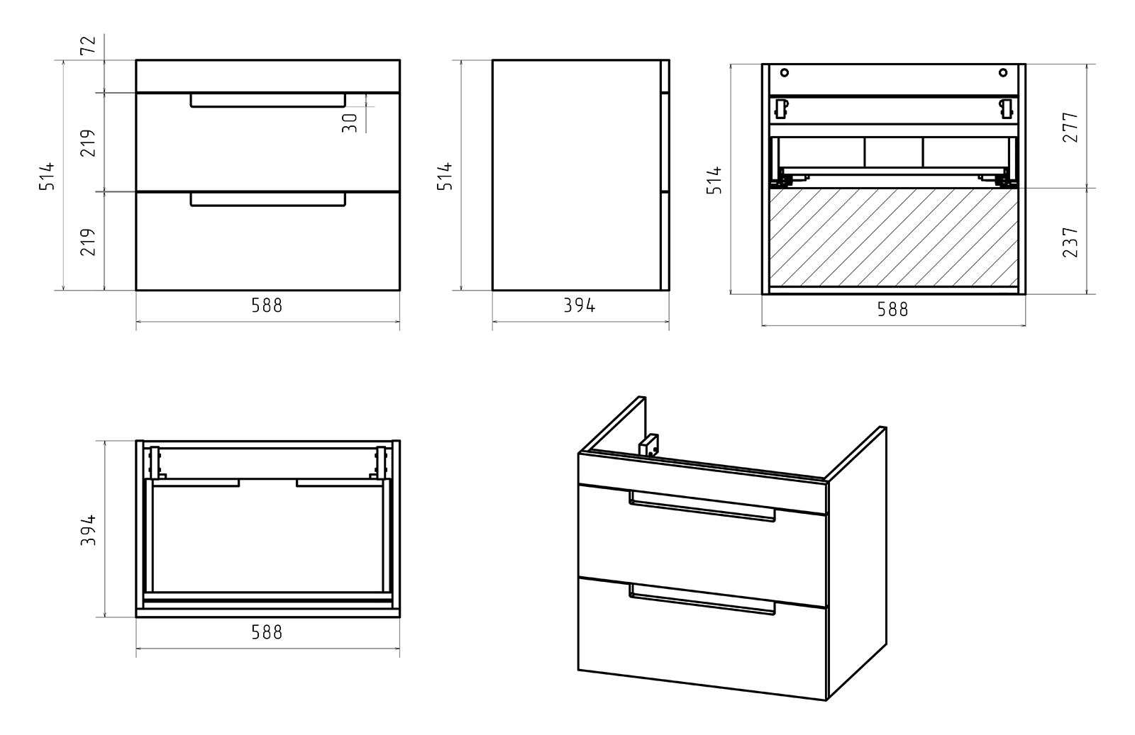 Подвесная тумба под раковину Brevita Ariana ARI-01060-0742Я 60см белый