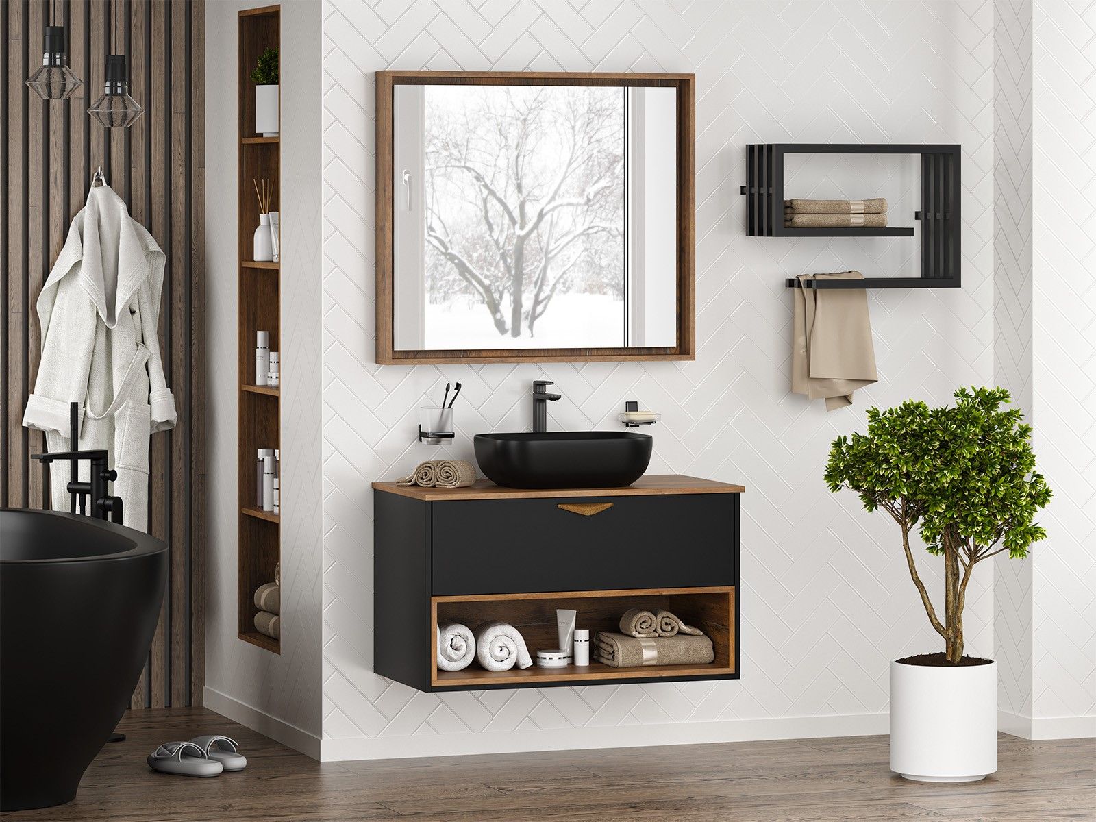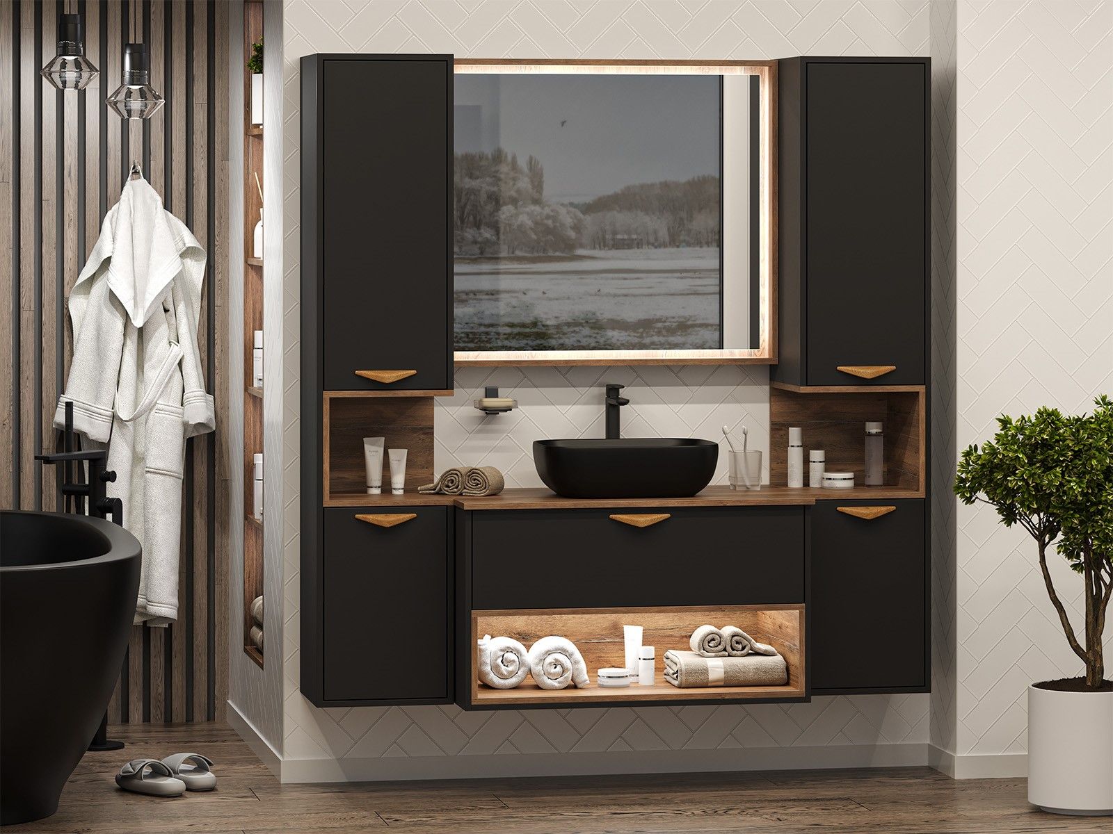 Подвесная тумба под раковину Brevita Bergen BER-07090-19-02-1Я с подсветкой 90см дуб Галифакс олово/чёрный купить