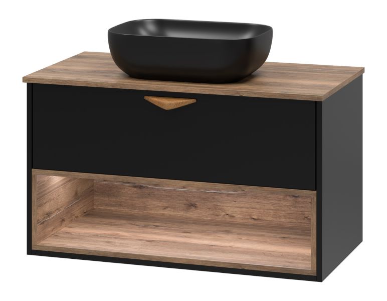 Подвесная тумба под раковину Brevita Bergen BER-07090-19-02-1Я с подсветкой 90см дуб Галифакс олово/чёрный