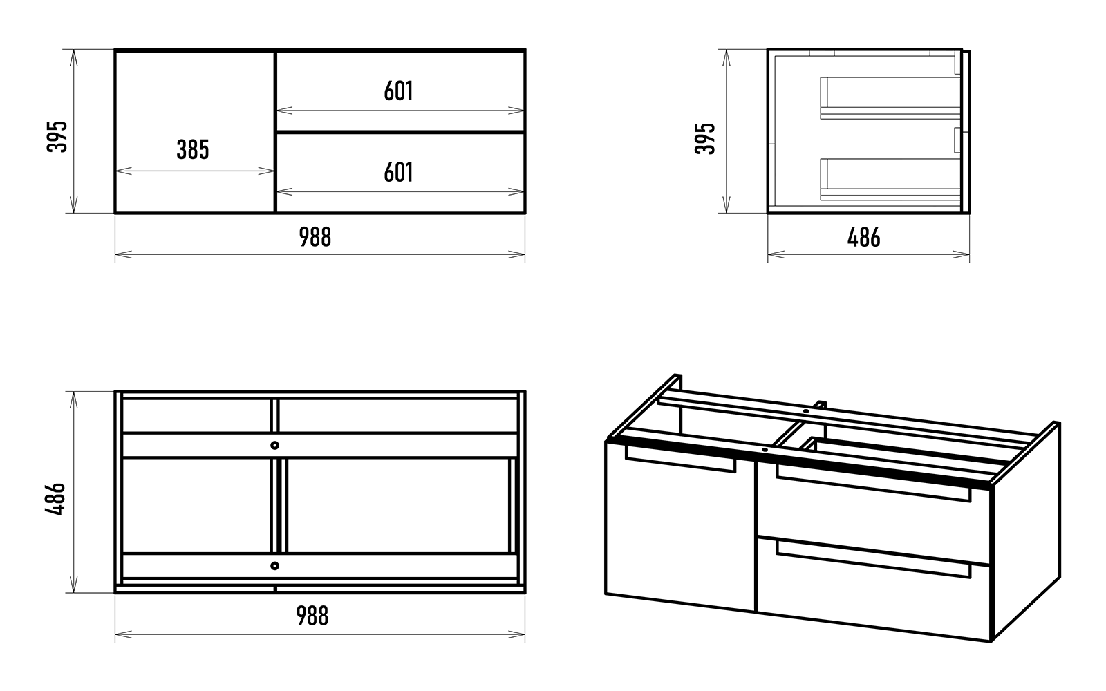 Подвесная тумба под раковину Brevita Cargo CAR-01100-021П2Я 100см чёрный