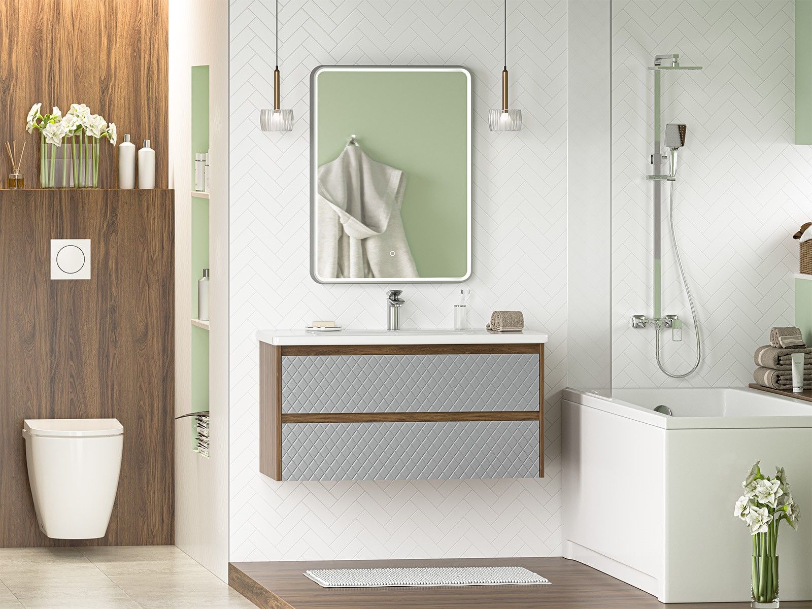 Подвесная тумба под раковину Brevita Chester CHE-09100-49502Я 100см серый/дуб Чарльстон темно-коричневый