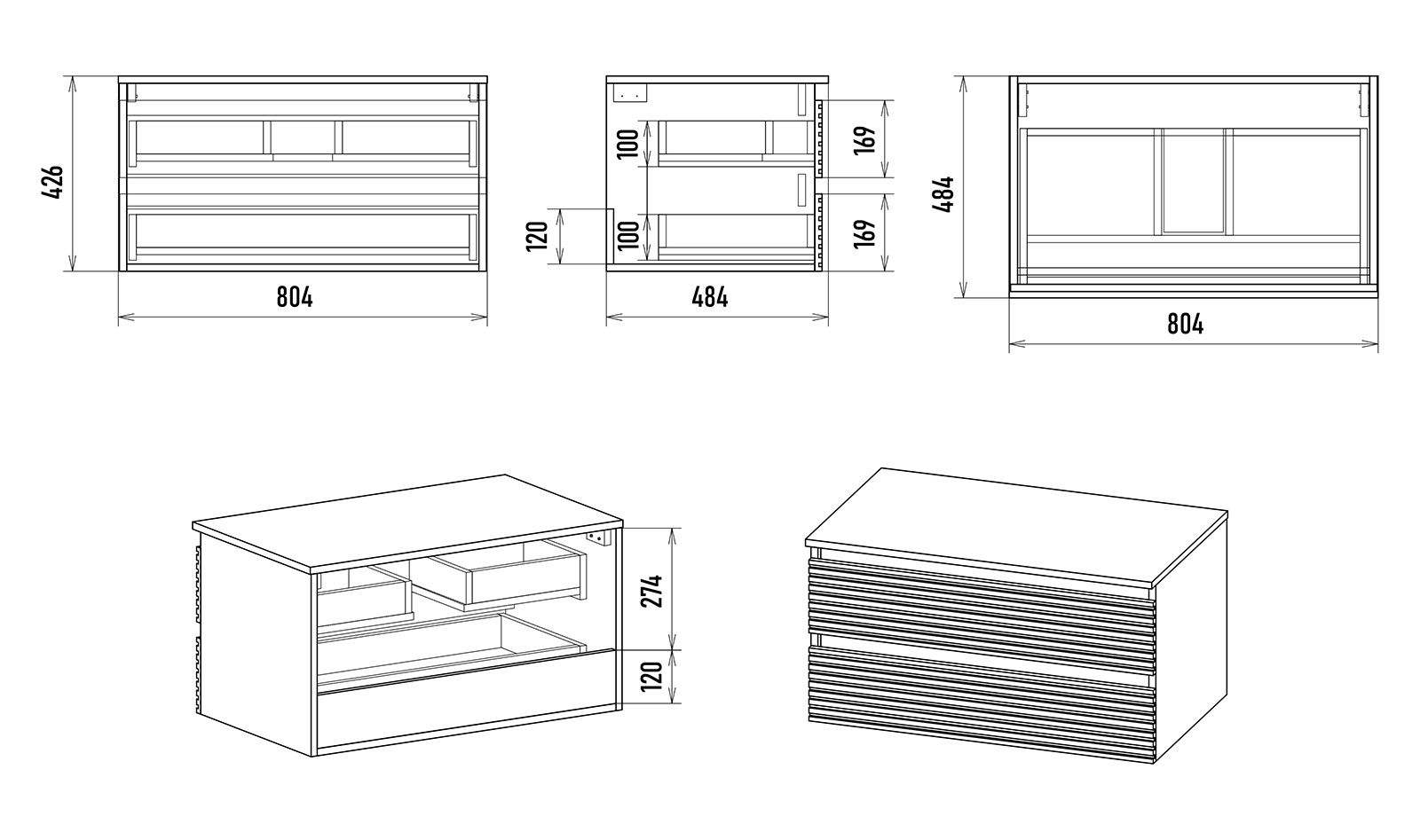 Подвесная тумба под раковину Brevita Dakota DAK-09080-19/01-2Я 80см дуб Галифакс олово/белый
