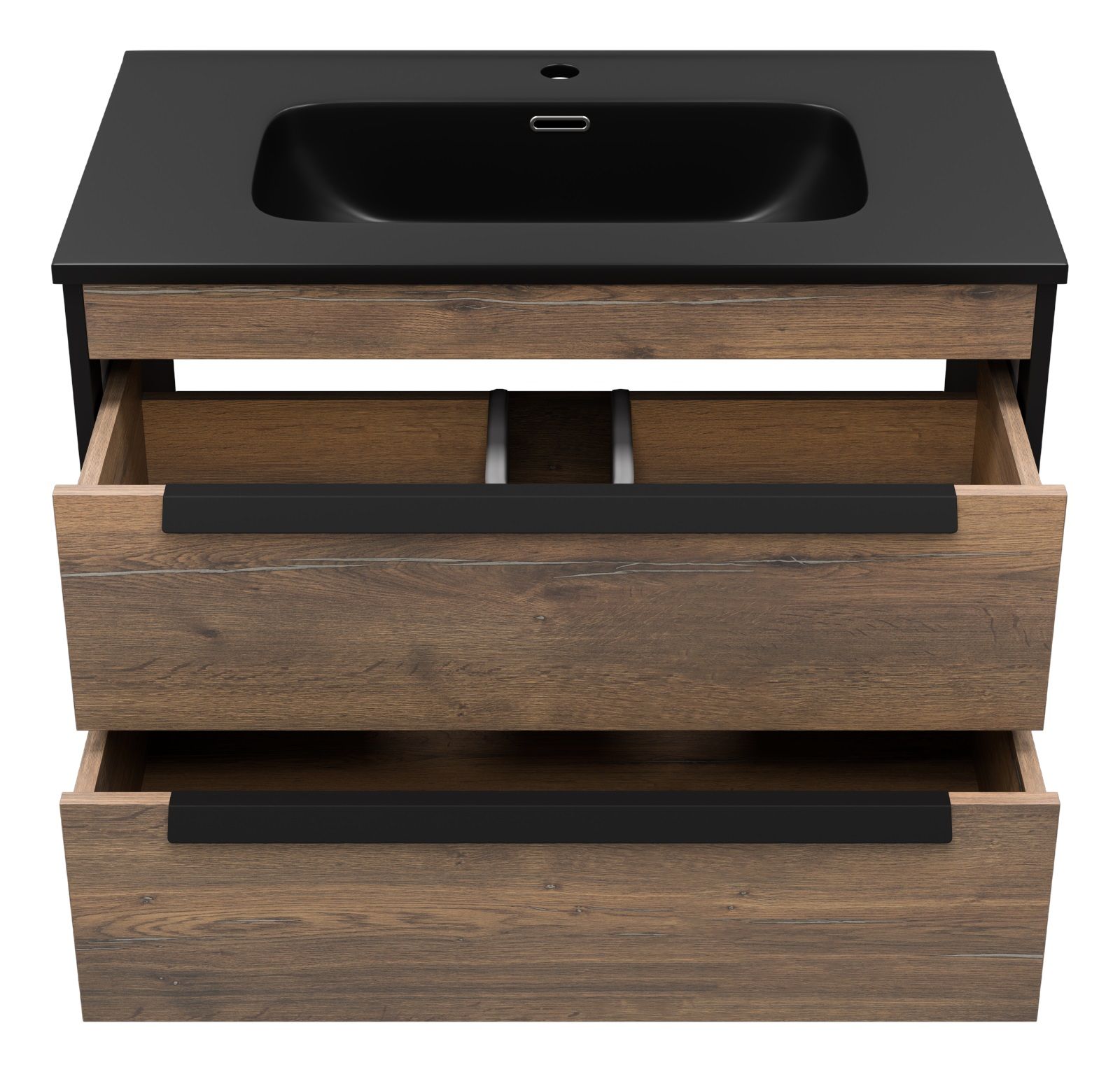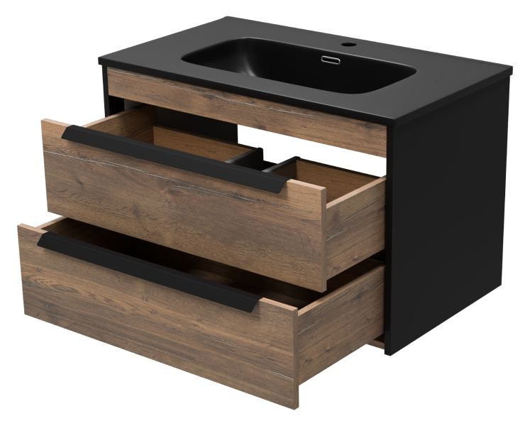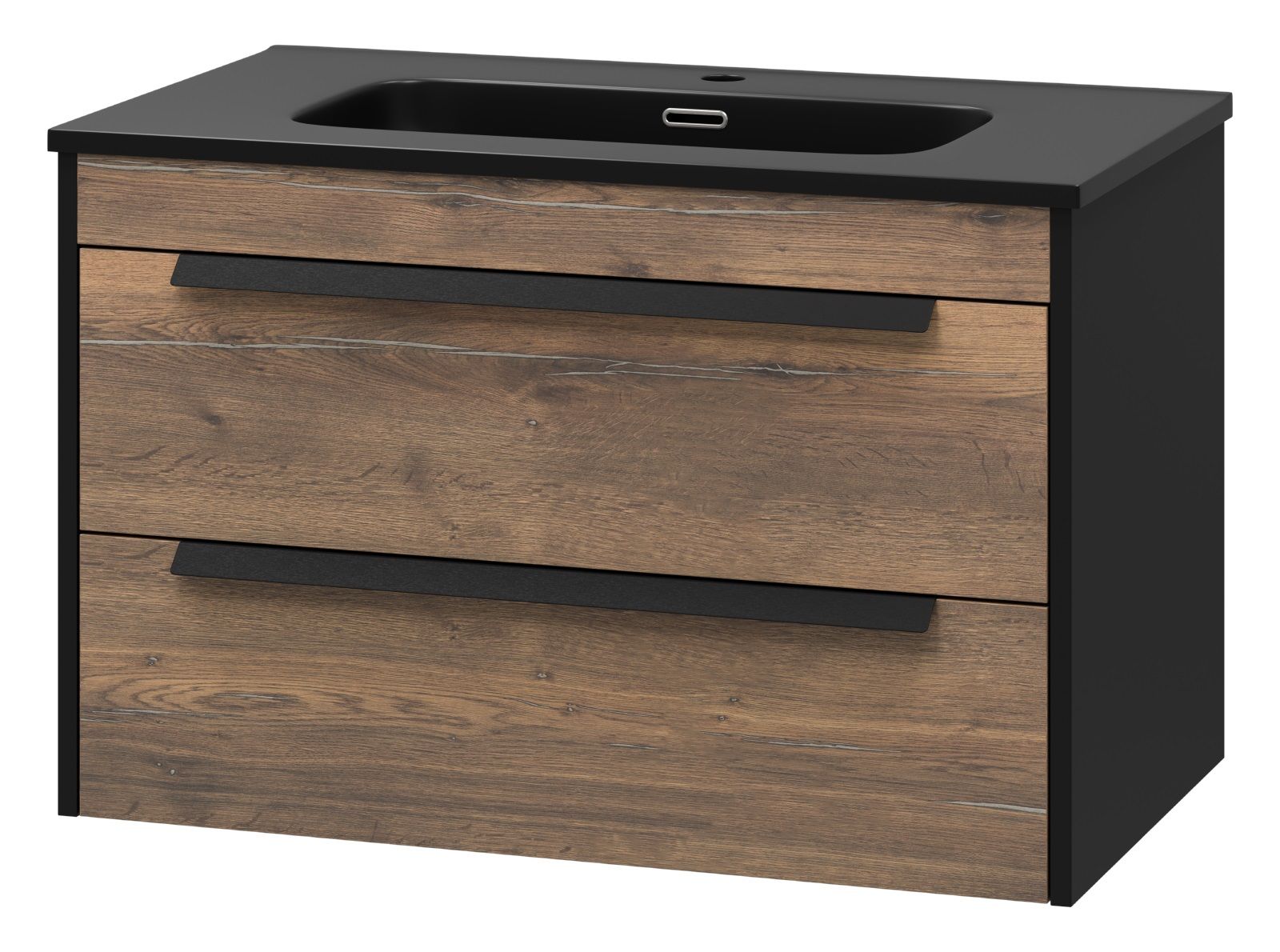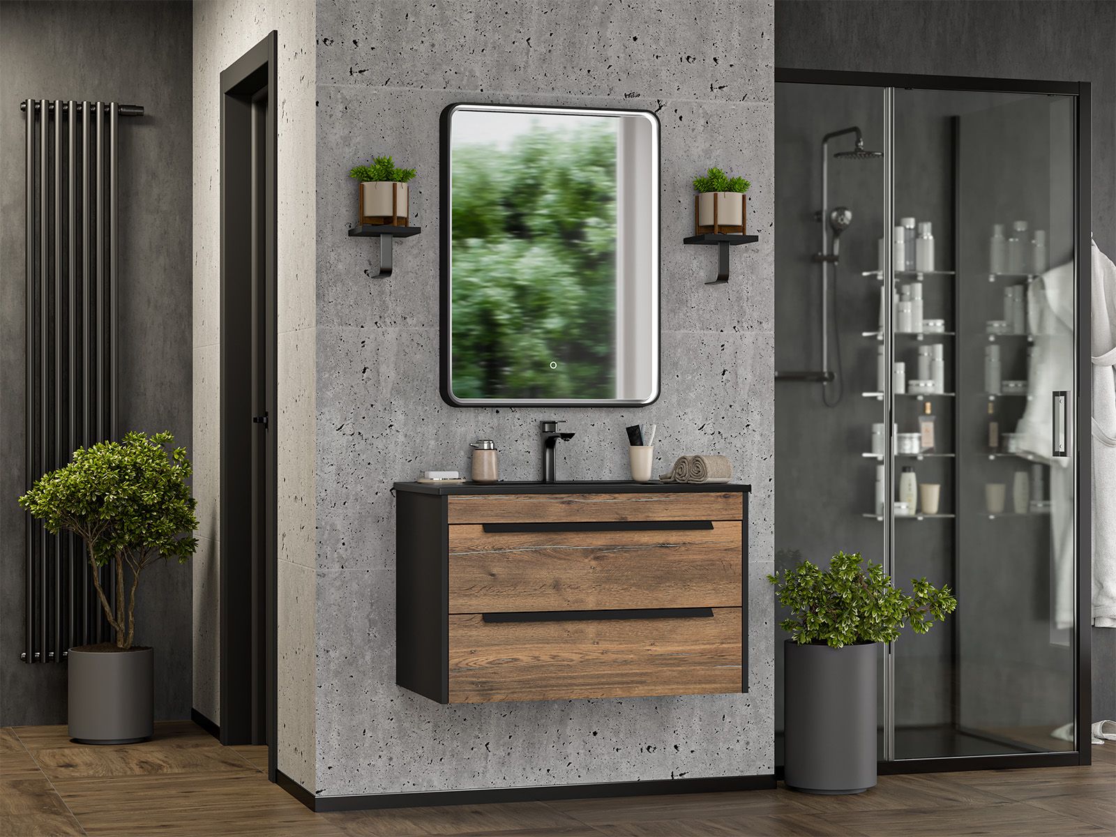 Подвесная тумба под раковину Brevita Monsour MON-09080-0102Я 80см дуб Галифакс олово/чёрный кварц