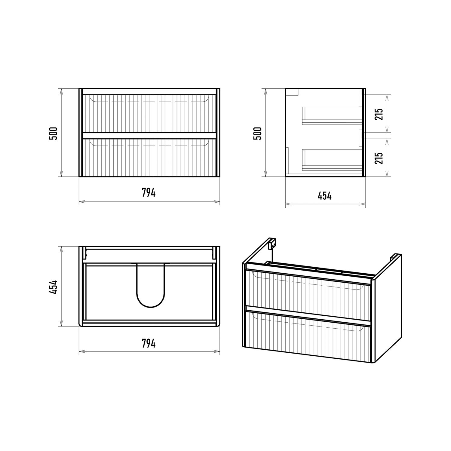 В комплекте с тумбой идёт раковина ONDA 80 см