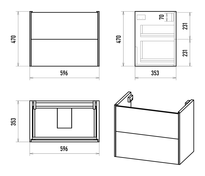 Размер мебели, мм (ш/г/в): 596x353x470