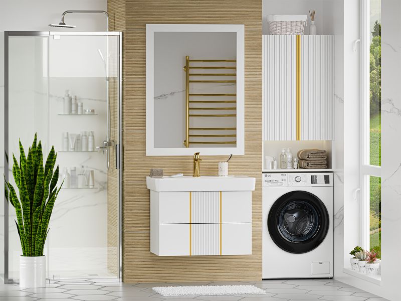 Подвесная тумба под раковину Brevita Vega VEG-09080-0102Я 80см белый/золото