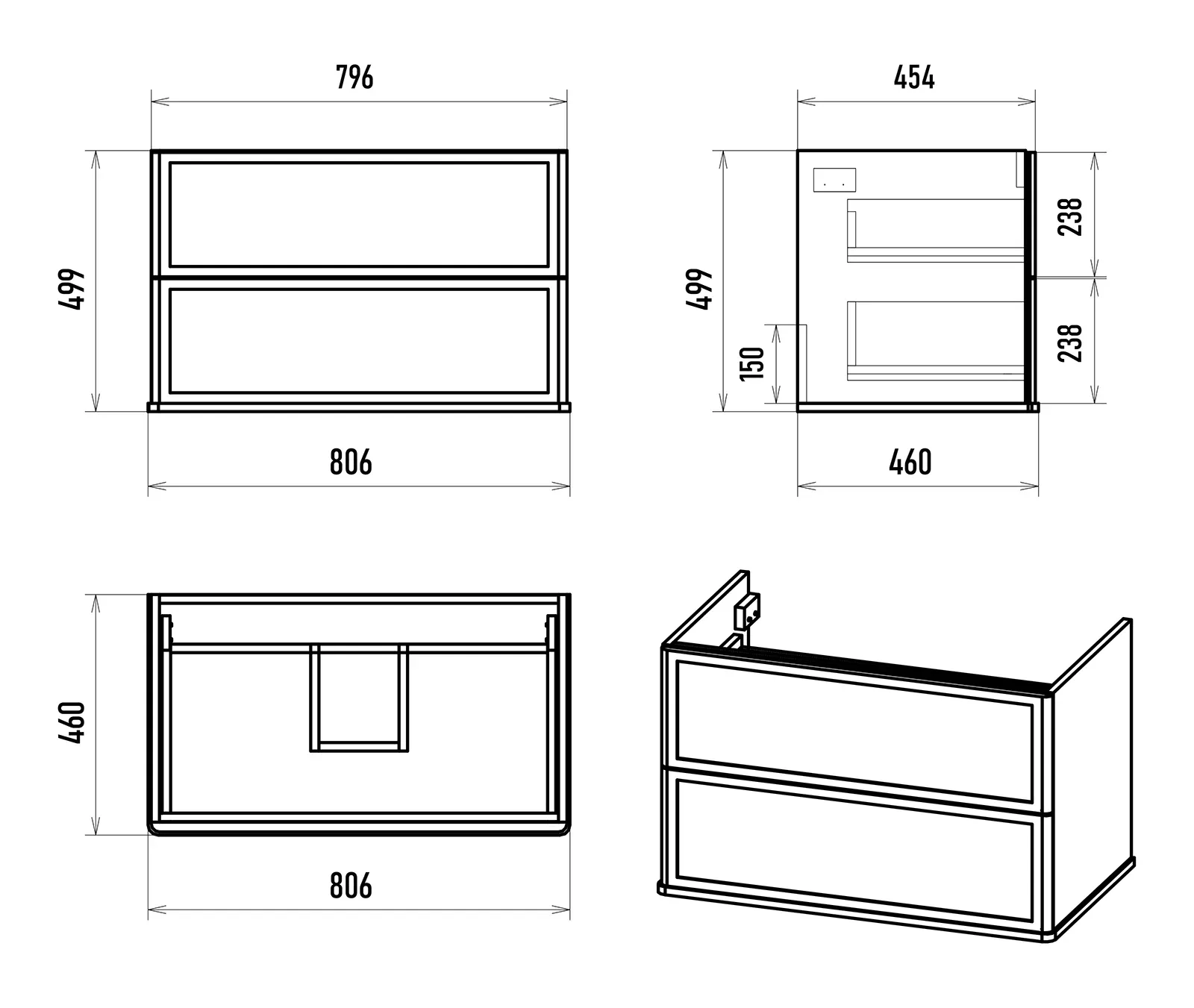 Размер мебели, мм (ш/г/в): 806x460x500