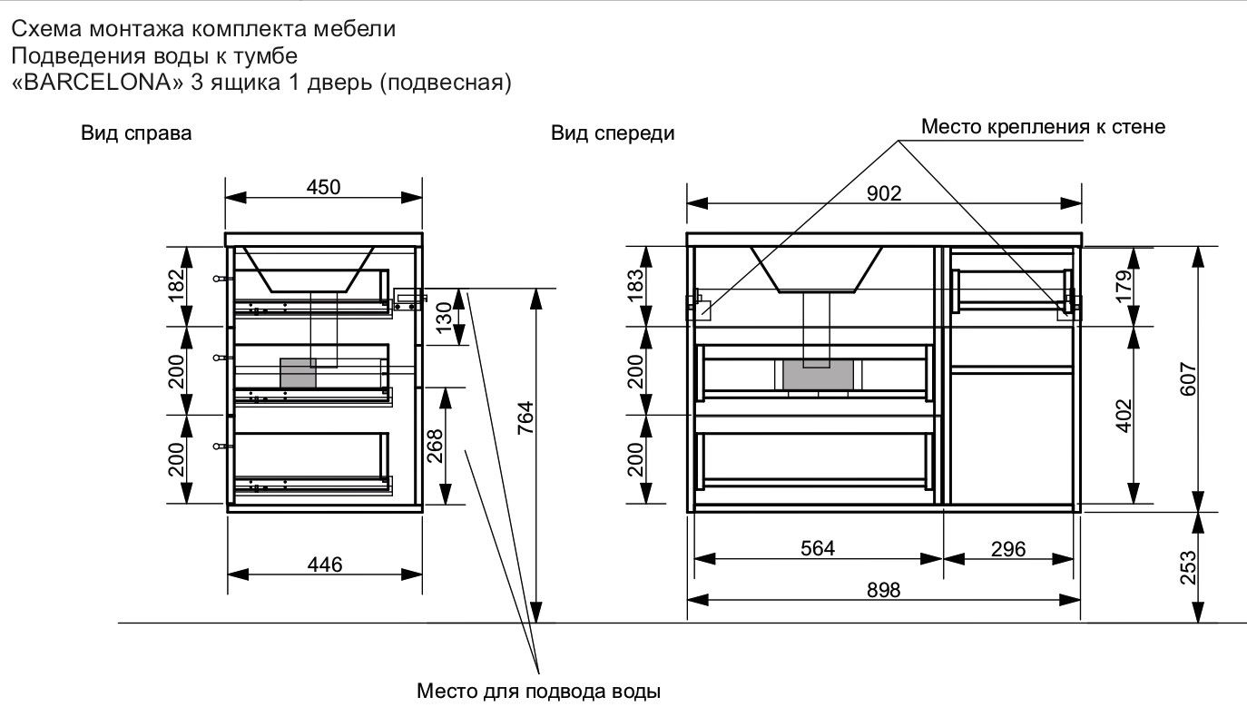 Подвесная тумба под раковину Эстет Barcelona ФР-00003576 Л 90см два ящика одна дверь