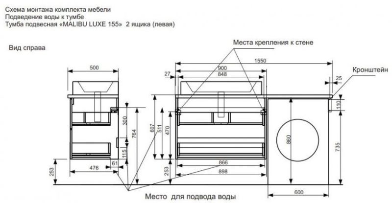 Коллекция Malibu Luxe выполнена в эко-стиле из экологичных материалов, что дает возможность быть ближе к природе. Подвесная тумба с 2 ящиками выглядит естественно и натурально. Её украшает большая столешница из массива дерева, устойчивая к влаге. Поверхность столешницы гладкая и прочная. Накладная раковина выполнена из литьевого мрамора. Стиральная машина устанавливается под столешницей, за счет чего экономит место. Malibu Luxe придаст не только уютную атмосферу, но и позволит грамотно распределить пространство в ванной комнате. Мебель выполнена из влагостойкого ЛДСП и качественного MDF с использованием эмали RENNER (Италия). Ящики снабжены системой плавного закрывания. Для мебели используется фурнитура Samet (Турция).