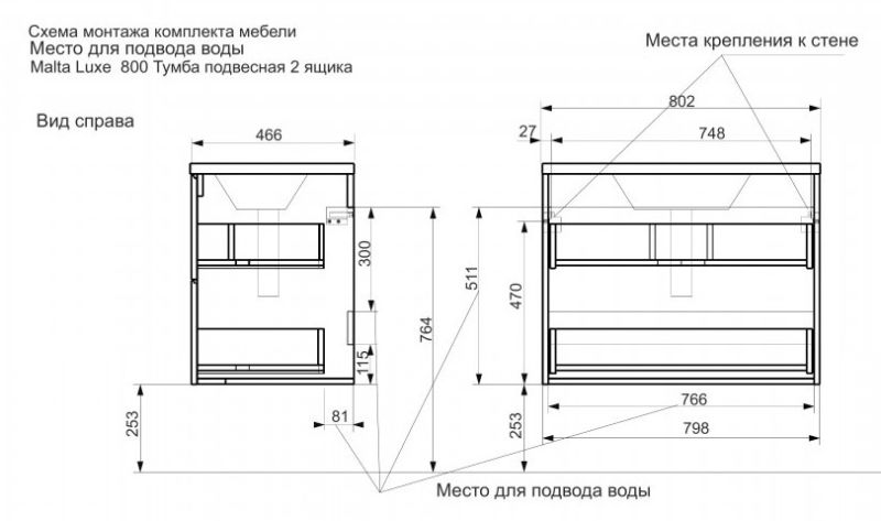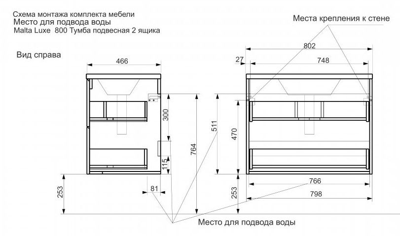 Подвесная тумба под раковину Эстет Malta ФР-00006323 80см два ящика белый купить