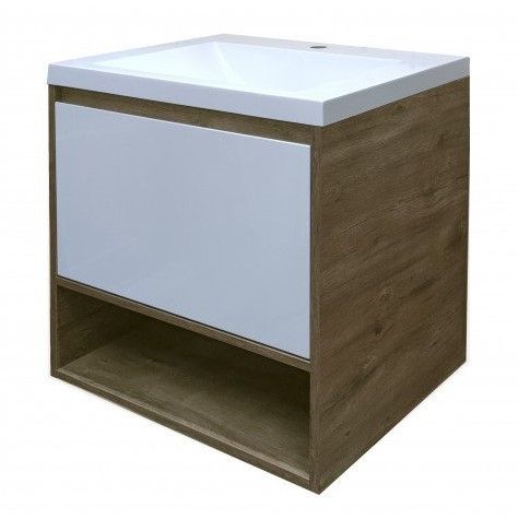 Подвесная тумба под раковину Эстет Monaco Wood ФР-00010680 60см один ящик белый/дуб рустикальный
