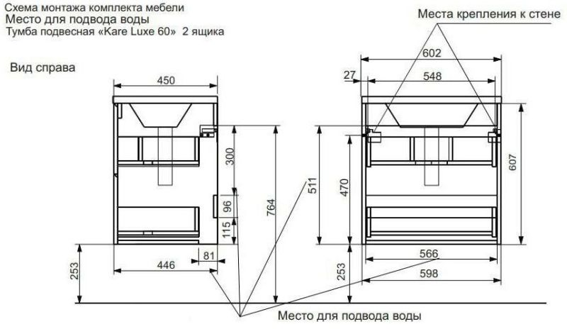 Подвесная тумба под раковину Kare Luxe ФР-00007078 70см два ящика белый купить