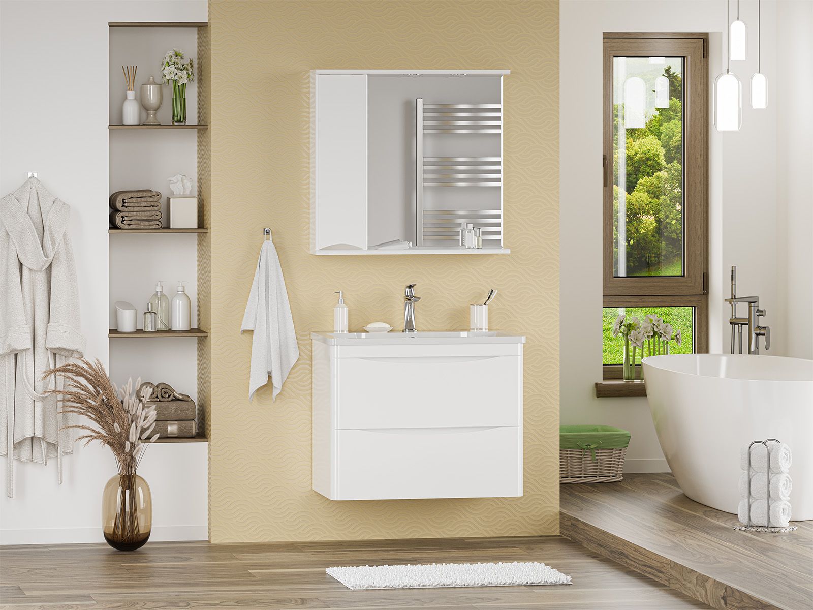 Подвесная тумба в ванную комнату – это не просто элемент мебели, а подлинный акцент в интерьере, который сочетает в себе функциональность и стиль. Она придаёт помещению лёгкость и воздушность, освобождая пространство на полу и создавая иллюзию большего объёма.Функциональные особенности таких тумб варьируются от наличия выдвижных ящиков до встроенных систем хранения, которые помогают организовать пространство ванной комнаты. Важным аспектом является также возможность выбора различных цветовых решений и отделок, что позволяет гармонично вписать тумбу в любой интерьер – от классического до ультрасовременного.С помощью подвесной тумбы ванная комната становится не только более удобной, но и эстетически привлекательной, создавая атмосферу уюта и роскоши.