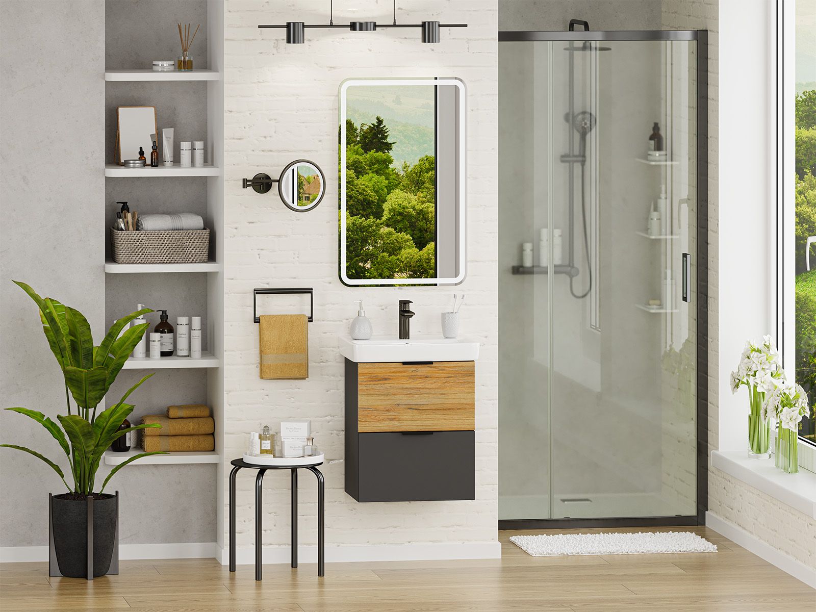 Подвесная тумба под раковину Misty Форест 50см дуб Вотан/антрацит купить