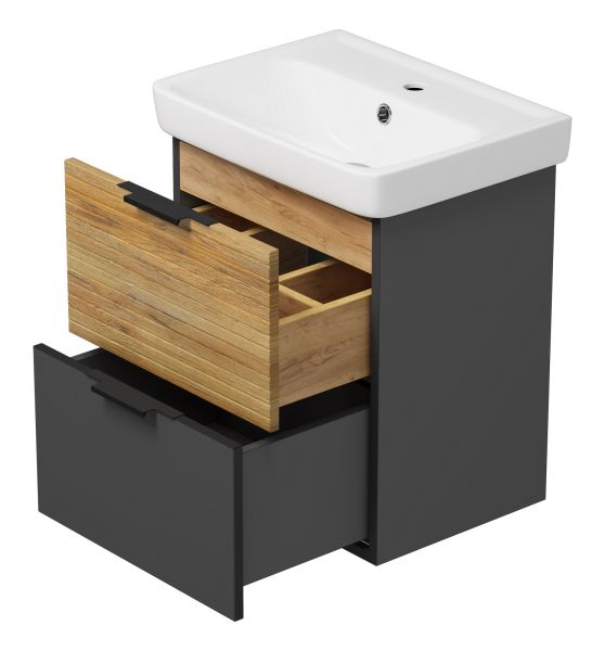 Подвесная тумба под раковину Misty Форест 50см дуб Вотан/антрацит
