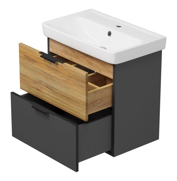 Подвесная тумба под раковину Misty Форест 60см дуб Вотан/антрацит
