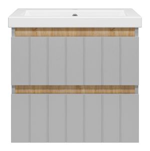 Подвесная тумба под раковину Misty Грэй 60см серый металлик/дуб Сонома