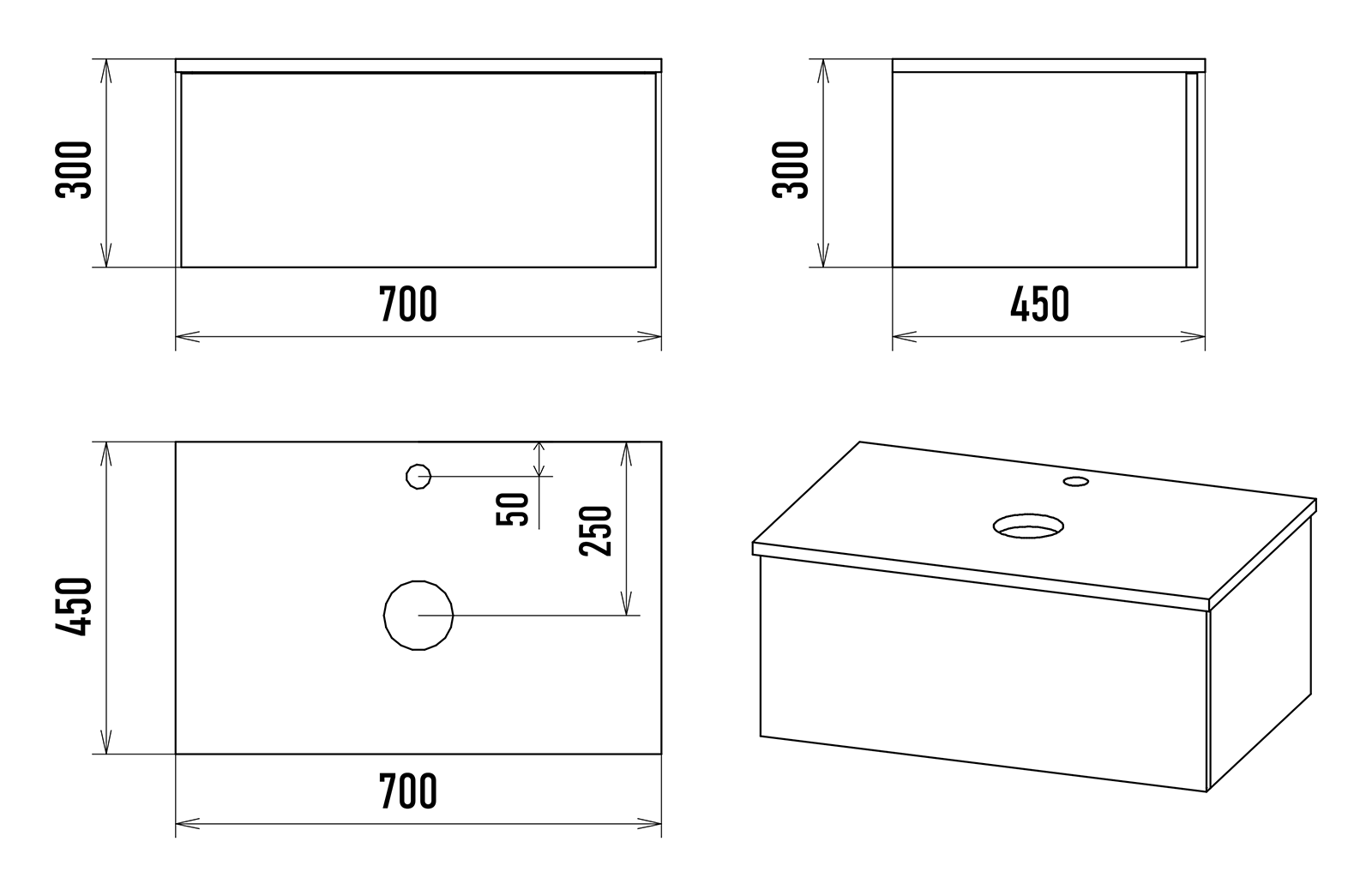 Подвесная тумба под раковину Misty Ива 70см графит/дуб Вотан